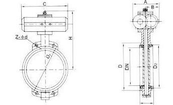 氣動對夾式軟密封蝶閥 外形尺寸
