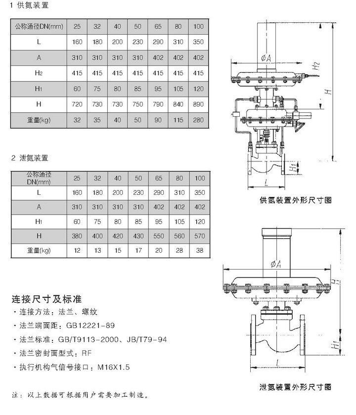 * 根據(jù)用戶要求,槽罐氮封閥(供氮閥泄氮閥)閥體、閥內(nèi)件、膜蓋可采用其它牌號材質(zhì)