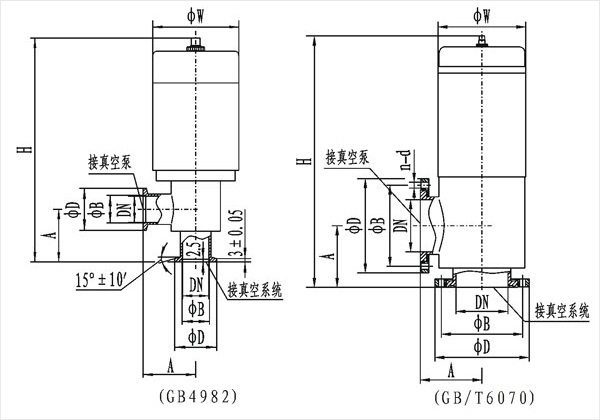 DDC-JQ-B型系列電磁真空帶充氣閥是安裝在機(jī)械式真空泵上的專用閥門。閥門與泵接在同一電源上,泵的開啟與停止直接控制了閥的開啟與關(guān)閉。當(dāng)泵停止工作或電源突然中斷時,閥能自動將真空系統(tǒng)封閉,并將大氣通過泵的進(jìn)氣口充入泵腔,避免泵油返流污染真空系統(tǒng)。